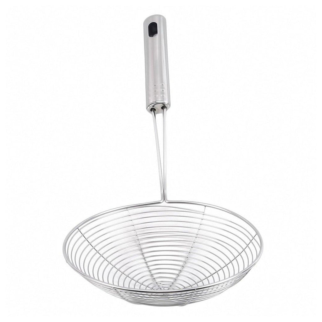 • Great Helper: Perfect For Frying Utensil You Need For Frying Up Your Favourite French Fries, Fish, Vegetables, Meats And More. The Concave Mesh Is Strong And Supported With A Strong Pipe That Won't Bend Or Get Way.